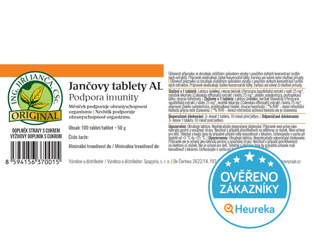 Jančovy tablety AL na snížení alergických reakcí organismu a podporu imunity jsou připraveny podle originální receptury legendárního českého léčitele Ing. Jiřího Janči, CSc.
